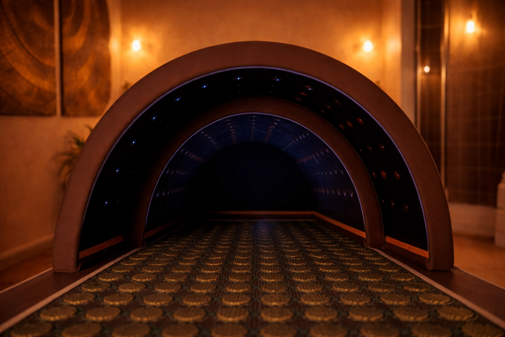 Cette technologie immersive agit directement sur le mental, ralentit les pensées et vous guide vers un état de relaxation profonde, entre veille et sommeil.